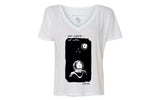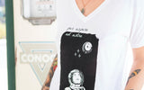 This V-Neck has a drapey fit that flows comfortably around your body for a perfect tucked or untucked look. We collaborated with the daring women in Aerospace to design a shirt featuring an original illustration. 'Per Aspera Ad Astra' is a Latin phrase that speaks to the potential of human perseverance, it means 'Through Hardship to the Stars.' Our design also contains an easter egg celebrating the women who will be literally reaching for the 🌙